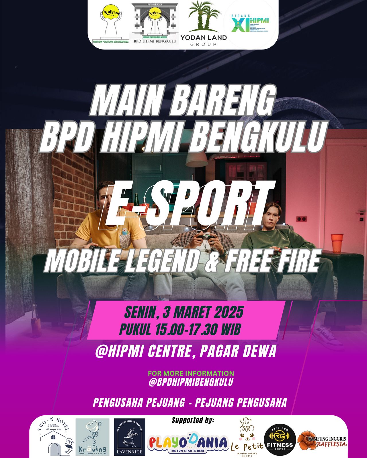 kegiatan Main Bareng E-Sport dengan tema Mobile Legends dan Free Fire di BPD HIPMI Center 3 Maret 2025