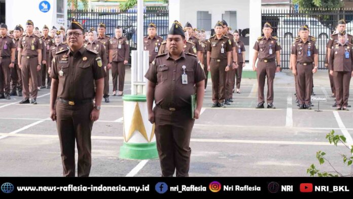 news-raflesia-indonesia, Bengkulu –  Kejaksaan Tinggi Bengkulu menggelar apel pagi rutin di halaman kantor Kejati Bengkulu senin (2/2). Kegiatan ini dipimpin langsung oleh Wakil Kepala Kejaksaan Tinggi Bengkulu, Dr. Muslikhuddin, S.H., M.H., dan diikuti oleh pejabat struktural, jaksa, serta seluruh pegawai dengan tertib dan penuh khidmat. Apel pagi tersebut menjadi momentum penting untuk memperkuat nilai disiplin, tanggung jawab, serta integritas aparatur kejaksaan.