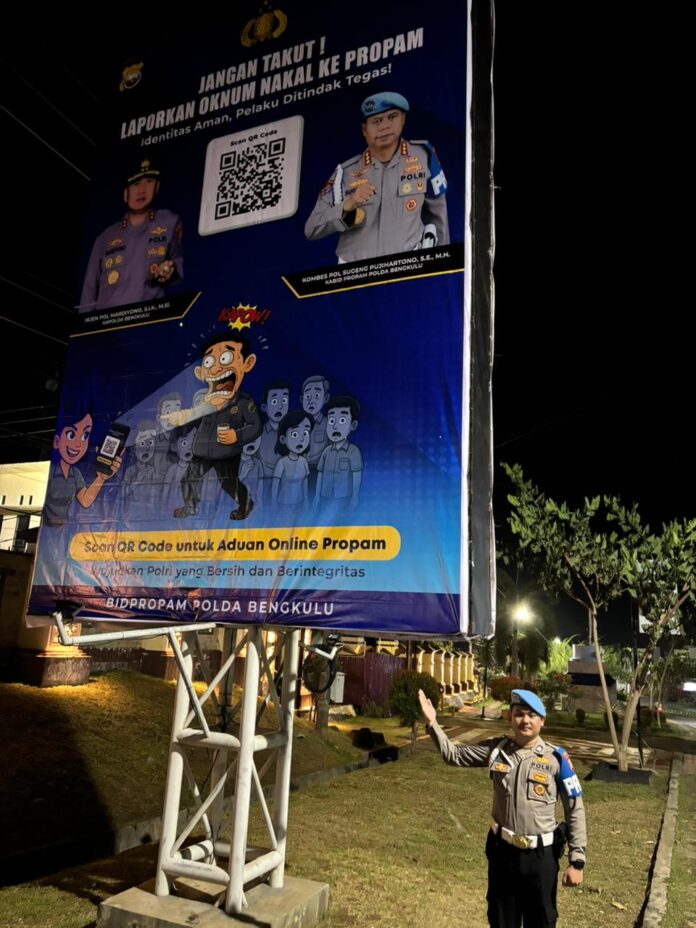 ‎Bengkulu, Newsraflesiaindonesia — Divisi Profesi dan Pengamanan (Propam) Mabes Polri terus berinovasi dalam meningkatkan transparansi dan pelayanan terhadap masyarakat. Melalui Kepala Bidang Propam Polda Bengkulu, Kombes Pol Sugeng Pujihartono, S.E., M.H., secara resmi diluncurkan aplikasi “Pengaduan Cepat Propam Polri” yang dapat diakses oleh seluruh masyarakat Indonesia.