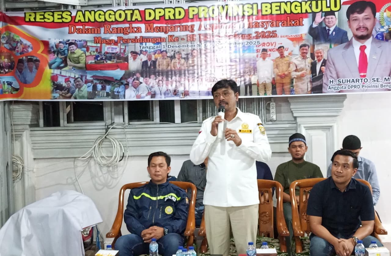 Anggota DPRD Provinsi Bengkulu, H. Suharto, S.E., M.B.A., melaksanakan reses masa persidangan ketiga tahun 2025 di Daerah Pemilihan Kota Bengkulu.
