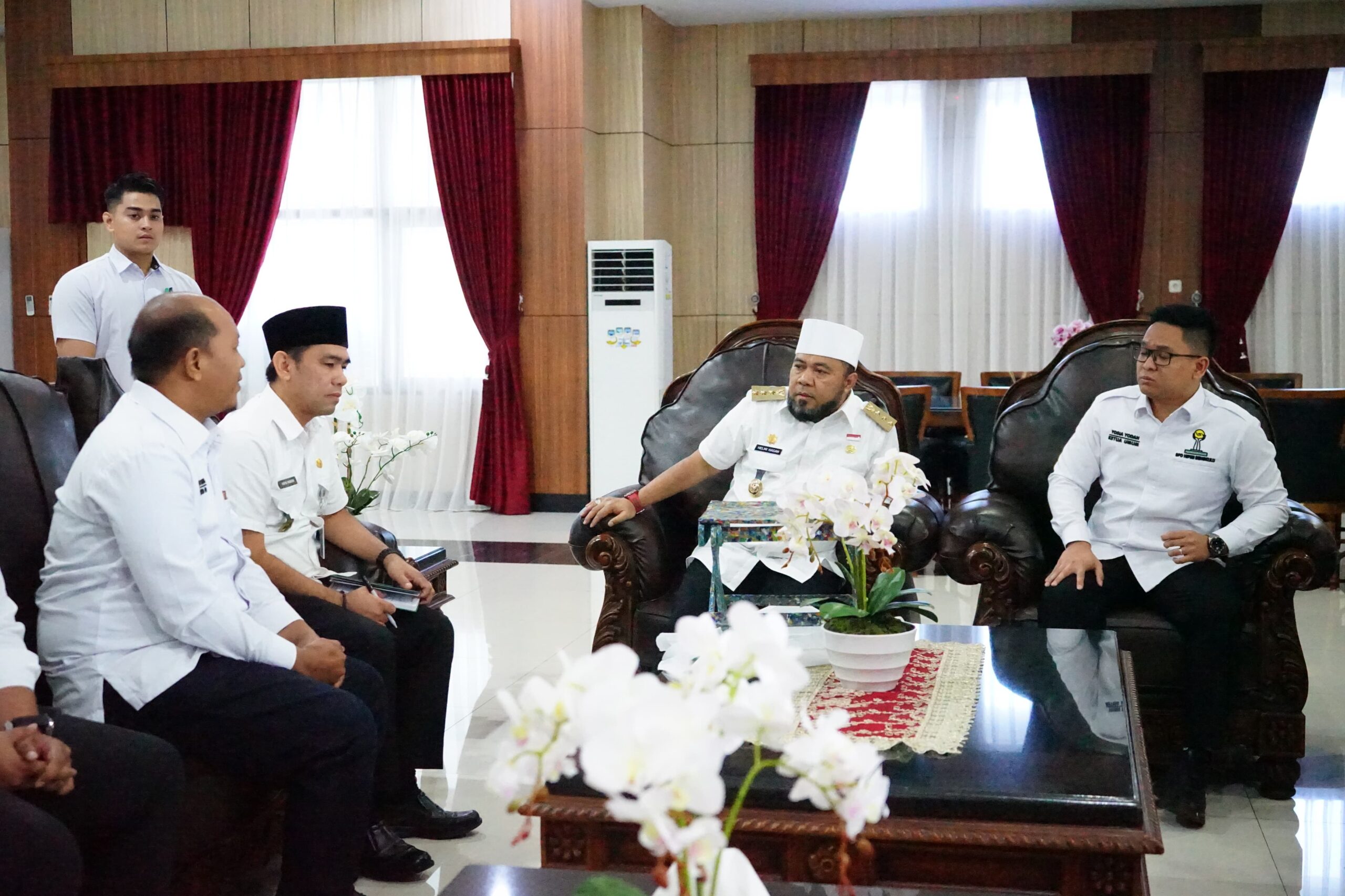 Helmi Hasan, menerima audiensi Badan Pengurus Daerah (BPD) Himpunan Pengusaha Muda Indonesia (HIPMI) Bengkulu di ruang kerjanya pada Rabu (5/3/25)