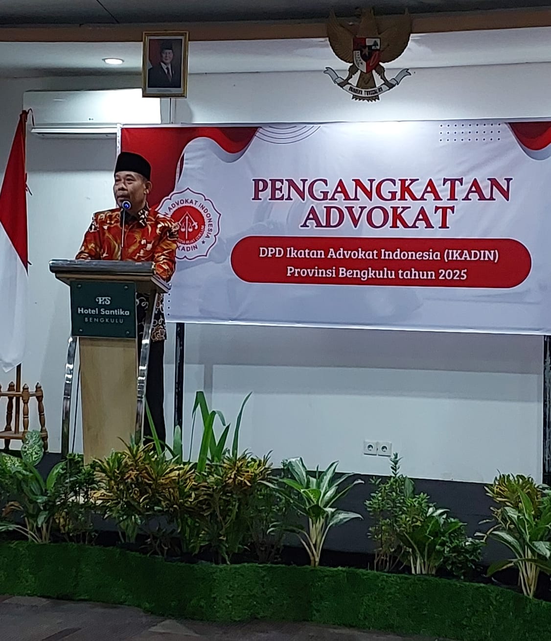 Bertempat di ruang Cempaka Hotel Santika Bengkulu, sejumlah advokat muda resmi dilantik oleh Ikatan Advokat Indonesia (IKADIN) pada Senin sore (3/3/2025). Prosesi ini akan dilanjutkan besok dengan penyumpahan oleh Ketua Pengadilan Tinggi Bengkulu. Setelah diangkat dan disumpah, para advokat diharapkan dapat menjalankan tugas mereka dengan mengedepankan prinsip keadilan dan siap membela kebenaran.