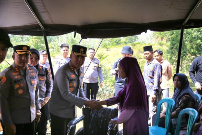 Kapolda Bengkulu memberikan bantuan alat kesehatan Kursi Roda dan alat bantu jalan untuk masyarakat yang membutuhkan dan pembagian sembako, Al-Qur’an, sajadah ke mushola yang ada di Desa Air Manganyau serta penyerapan aspirasi masyarakat secara langsung.
