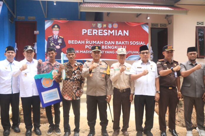 Prosesi peresmian ditandai dengan penyerahan kunci rumah secara simbolis dan pemotongan pita oleh Kapolda Bengkulu. Dalam sambutannya, Kapolda menegaskan bahwa program ini bukan sekadar pembangunan fisik, tetapi sebuah langkah menghadirkan empati, harapan, dan solusi nyata bagi masyarakat yang sedang berjuang. Ia menyampaikan bahwa kepolisian harus mampu merasakan apa yang dirasakan rakyat, terutama mereka yang hidup dalam keterbatasan dan membutuhkan uluran tangan.