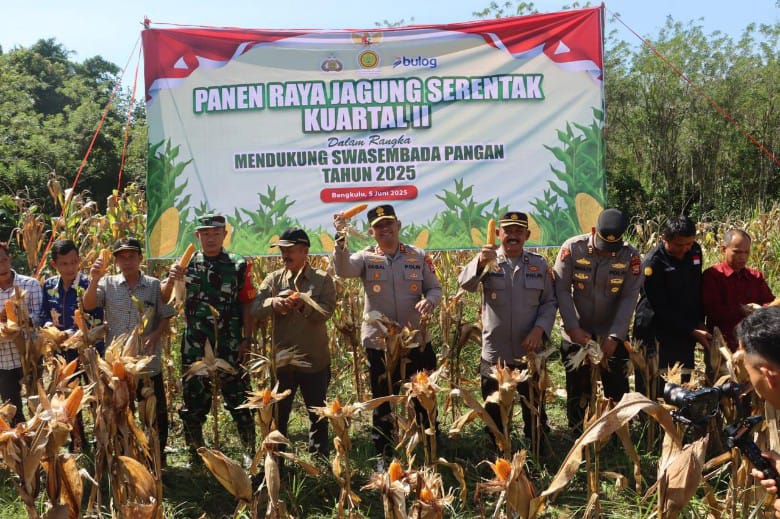 “Hari ini kami bersama unsur FKPD Kabupaten Kepahiang ikut ambil bagian dalam Panen Raya Jagung Serentak Kuartal II. Ini adalah langkah konkrit kami untuk mendukung program ketahanan pangan nasional,” ujar Kapolres.