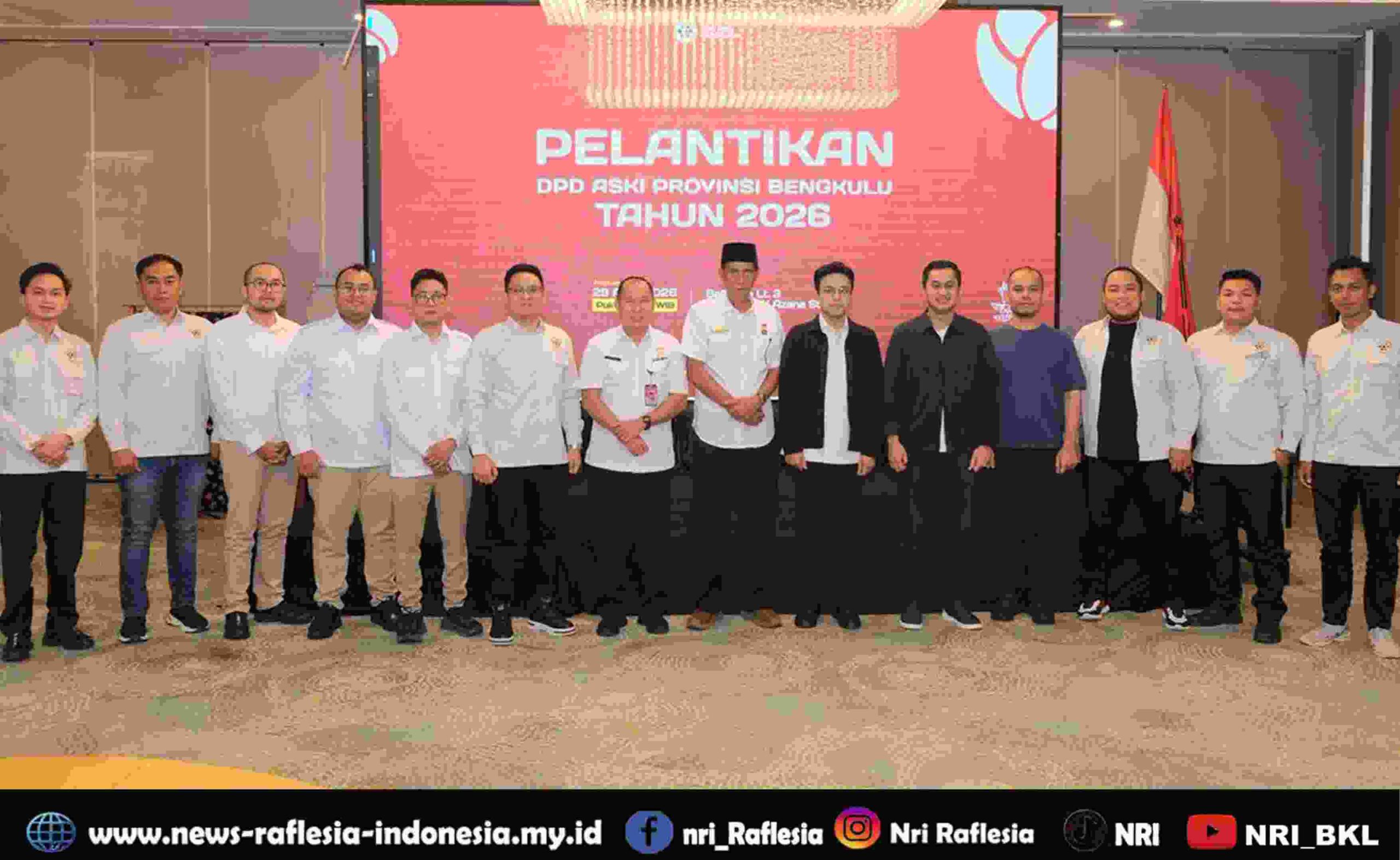 Ketua Umum ASKI Bengkulu terpilih, Yosia Yodan, seusai Pe pelantikan berfoto bersama di Hotel Two K Azana Style 29/04/2026