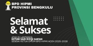 Ketua Umum BPD HIPMI Bengkulu Yosia yodan ucapkan selamat atas pelantikan...