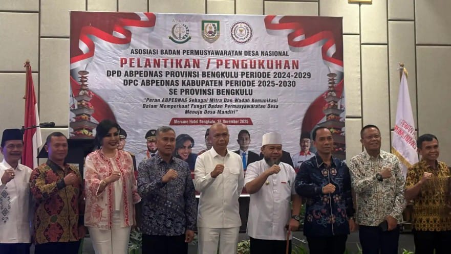 news-raflesia-indonesia, Bengkulu – Pemerintah Provinsi Bengkulu menegaskan komitmennya dalam memperkuat fungsi Badan Permusyawaratan Desa (BPD) sebagai garda pengawasan pembangunan di tingkat desa. Penegasan ini disampaikan Gubernur Bengkulu, Helmi Hasan, saat menghadiri Pelantikan dan Pengukuhan DPD dan DPC ABPEDNAS se-Provinsi Bengkulu pada Minggu (16/11) diBengkulu.