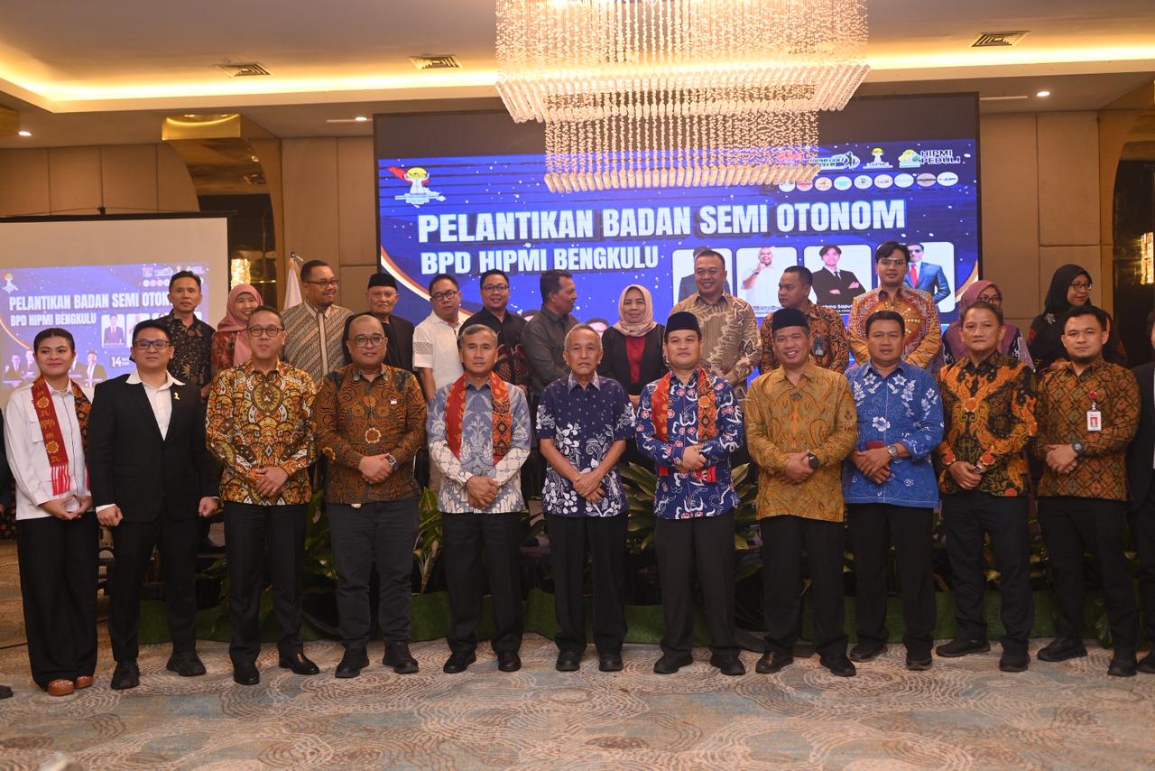 news-raflesia-indonesia, Bengkulu – Badan Pengurus Daerah (BPD) Himpunan Pengusaha Muda Indonesia (HIPMI) Bengkulu resmi melantik empat badan semi-otonom baru pada Jumat (14/11) di Bengkulu sebagai langkah strategis untuk memperkuat ekosistem kewirausahaan dan memperluas ruang kolaborasi bagi generasi muda. Pelantikan ini menjadi momentum penting dalam mendorong pertumbuhan ekonomi daerah melalui pengembangan potensi pemuda di berbagai sektor.