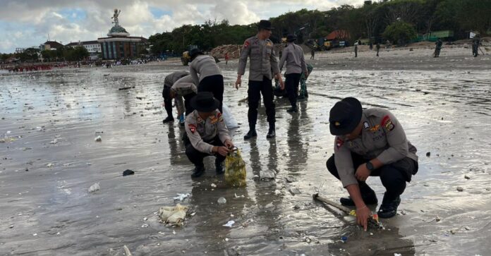 news-raflesia-indonesia, Bali – Kepolisian Daerah (Polda) Bali bersama TNI dan masyarakat menggelar kegiatan Karya Bakti Pembersihan Pantai dari sampah plastik di kawasan Pantai Kedonganan dan Pantai Kuta, Kecamatan Kuta, Kabupaten Badung, Bali, Selasa (3/2/2026) pagi.