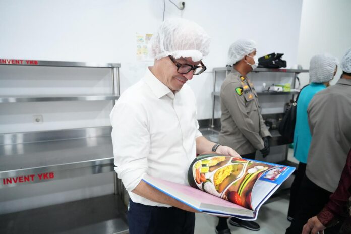 news-raflesia-indonesia, Jakarta — Kamis, 18 Desember 2025 Dalam rangkaian kunjungan diplomatik Delegasi Kedutaan Besar Prancis ke Satuan Pelayanan Pemenuhan Gizi (SPPG) Mabes Polri 1 Pejaten, Polri menyerahkan Buku Menu MBG “Rasa Bhayangkara Nusantara” kepada delegasi sebagai bagian dari kegiatan peninjauan pelaksanaan Program Makan Bergizi Gratis (MBG). Penyerahan buku ini menjadi simbol komitmen Polri dalam mendukung Asta Cita Presiden Prabowo Subianto, khususnya pembangunan sumber daya manusia melalui pemenuhan gizi anak bangsa.