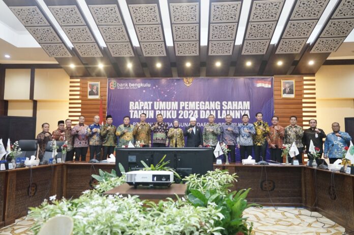 news-raflesia-indonesia.my.id – PT. Bank Pembangunan Daerah Bengkulu terus menunjukan komitmennya dalam mendorong pertumbuhan ekonomi dan pembangunan daerah. Bank Bengkulu menggelar Rapat Umum Pemegang Saham Tahunan (RUPST) tahun buku 2024 dan RUPS lainnya bertempat di Aula Moechtar Azehari Graha bank Bengkulu lantai 7 yang dihadiri oleh Pemegang saham yang terdiri dari Gubernur Bengkulu selaku PSP, Direktur bjb, seluruh kepala daerah Kabupaten dan Kota, dan Pemegang Saham seri B.