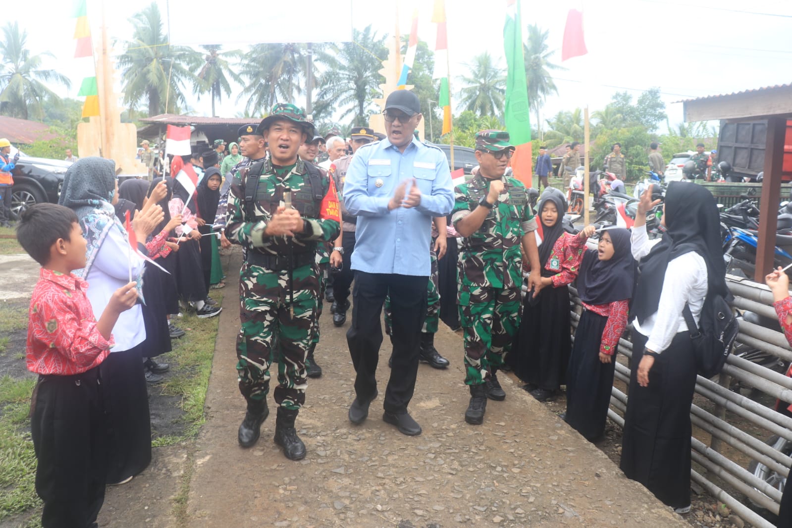 Dandim 0407/KB Kolonel Inf, Widi Rahman, SH, M. Si, Bersama Penjabat Bupati Kabupaten Bengkulu Tengah, Dr. Heriyandi Roni, M. Si, Pada acara TMMD di Desa Tengah Padang, Kabupaten Bengkulu Tengah. Rabu, (19/02/2025)