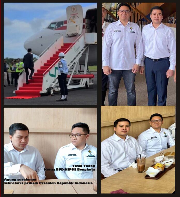 Bengkulu, news-raflesia-indonesia.my.id – Ketua Umum Badan Pengurus Daerah Himpunan Pengusaha Muda Indonesia (BPD HIPMI) Bengkulu, Yosia Yodan, melakukan pertemuan dengan Sekretaris Pribadi (Sespri) Presiden Republik Indonesia, Prabowo Subianto, yakni Agung Surahman. Pertemuan ini menjadi momen penting untuk berdiskusi mengenai masa depan pembangunan di Provinsi Bengkulu.